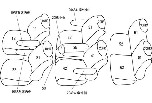 | シートパターン | ヘッドレスト総数:7 1列目肘掛:2 2列目肘掛:2 3列目肘掛:0 サイドエアバッグ:○ |