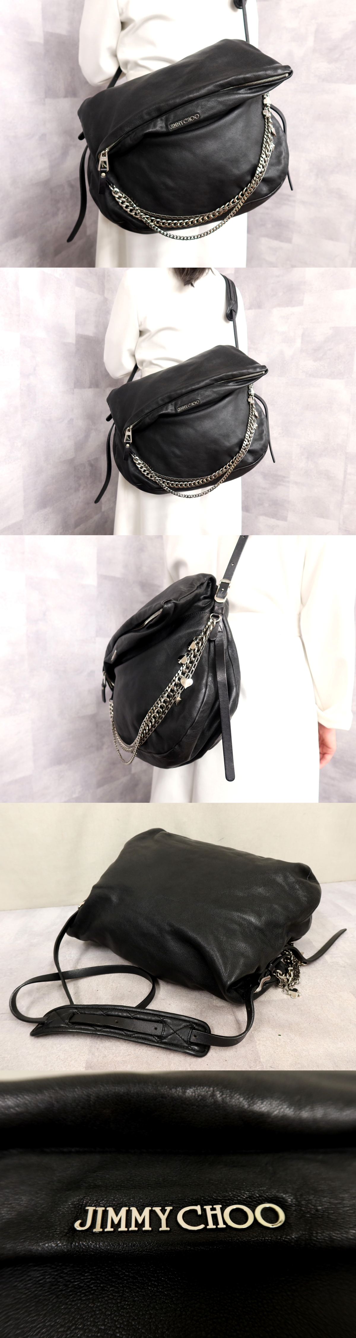 ●超美品●JIMMY CHOO ジミーチュウ●バイカー●ロゴ金具●カーフ レザー 本革●チェーン ショルダー バッグ●黒●SV金具●A4●Js62836 收藏