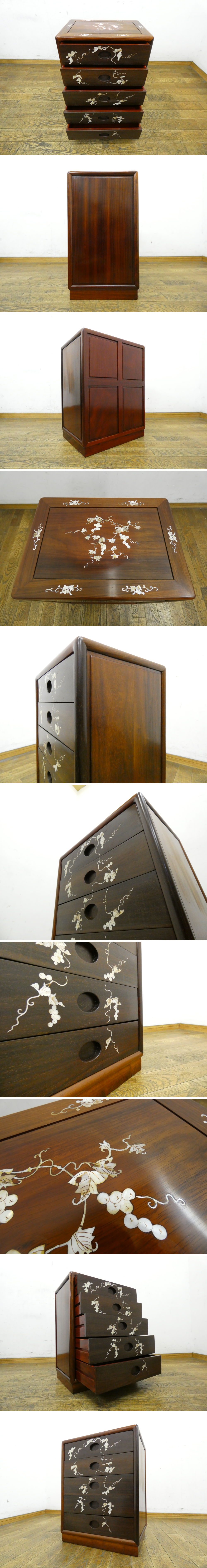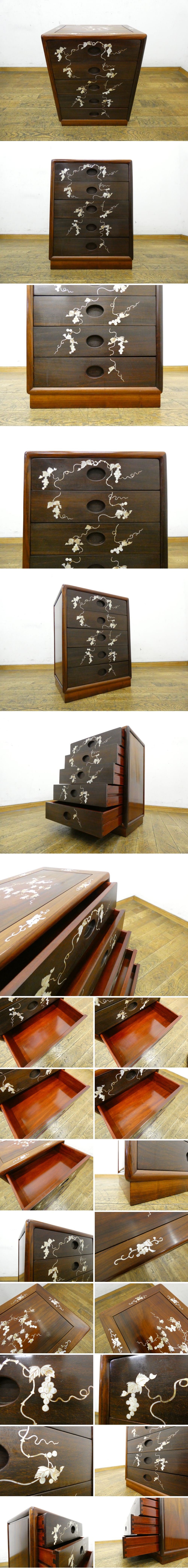 ◆RN95◆唐木家具◆花梨◆螺鈿細工◆無垢材◆5段チェスト◆サイドチェスト◆引き出し収納◆整理箪笥◆伝統工芸 收藏