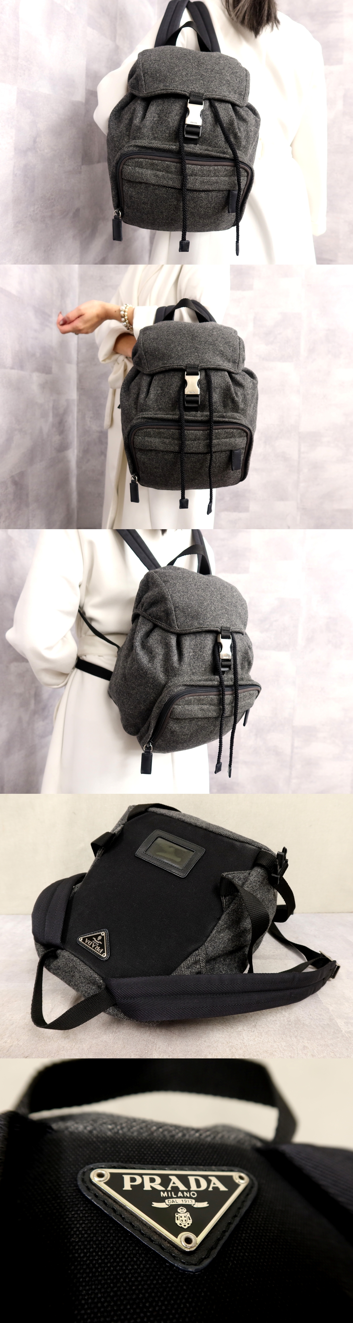 ●超美品●PRADA プラダ●三角ロゴプレート●ウール●リュックサック●グレー●シルバー金具●イタリア製●収納 かばん●Js63052 收藏