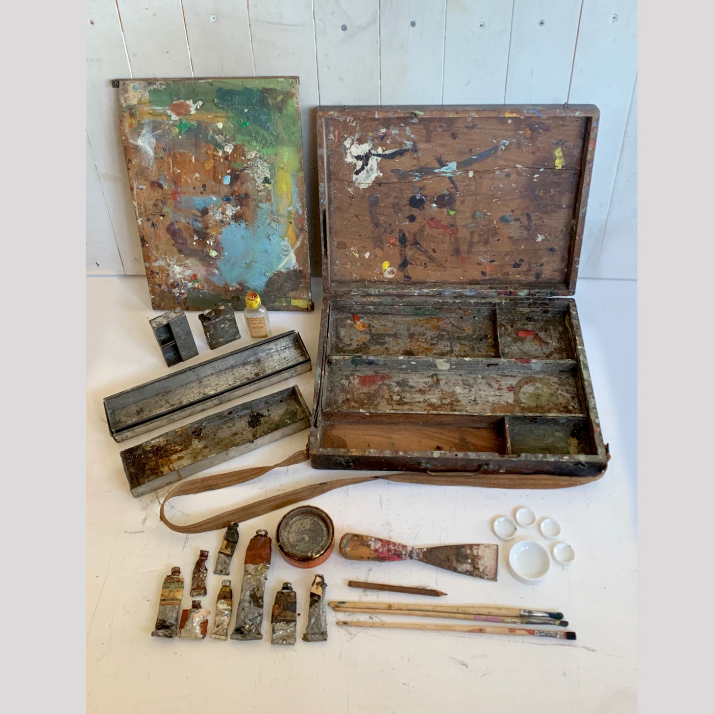 フランス 19世紀後期 パリ 画家 油絵 絵の具 道具箱 印象派 絵画 木箱 パレット 古道具 オブジェ 静物画 人物 抽象 美術 民藝 アンティーク 收藏