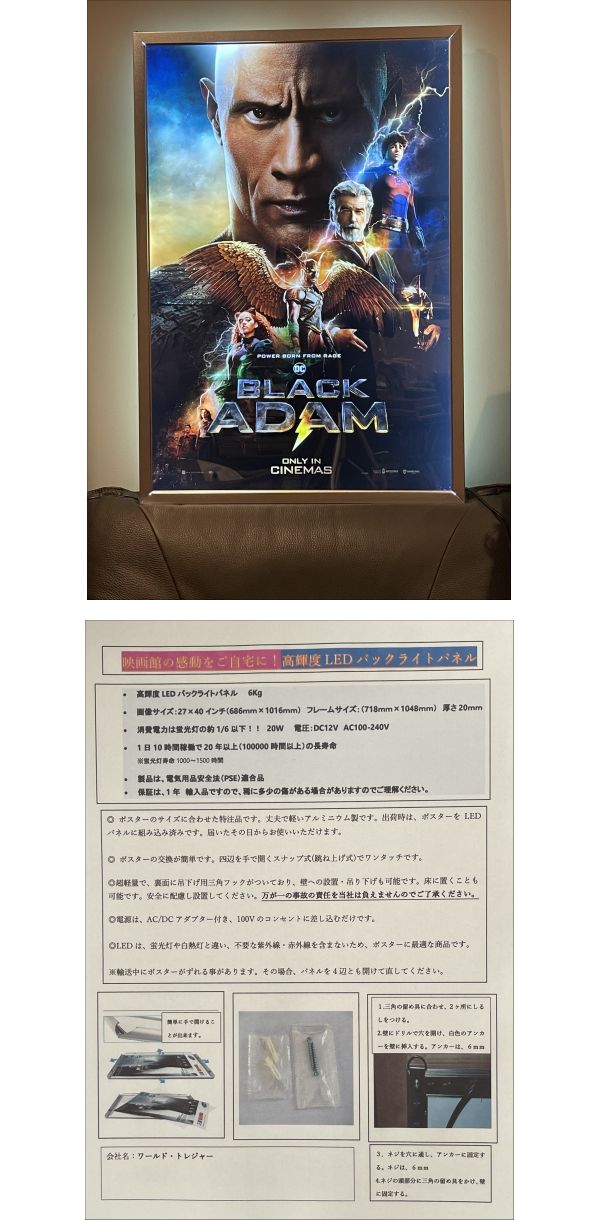 ★大特価★ポスターとLEDパネル(銀色)セット★新品★USA製★『ブラックアダム①』両面刷り27×40インチ★USAアメリカ製 收藏