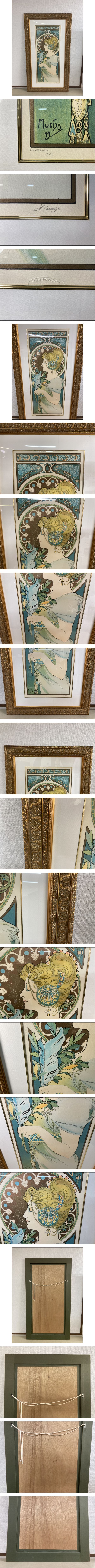 真作 アルフォンス・ミュシャ Alphonse Mucha 羽根 シルクスクリーン 高さ 約115cm 横幅 約63cm 額装 現状品 コレクター アイテム 收藏