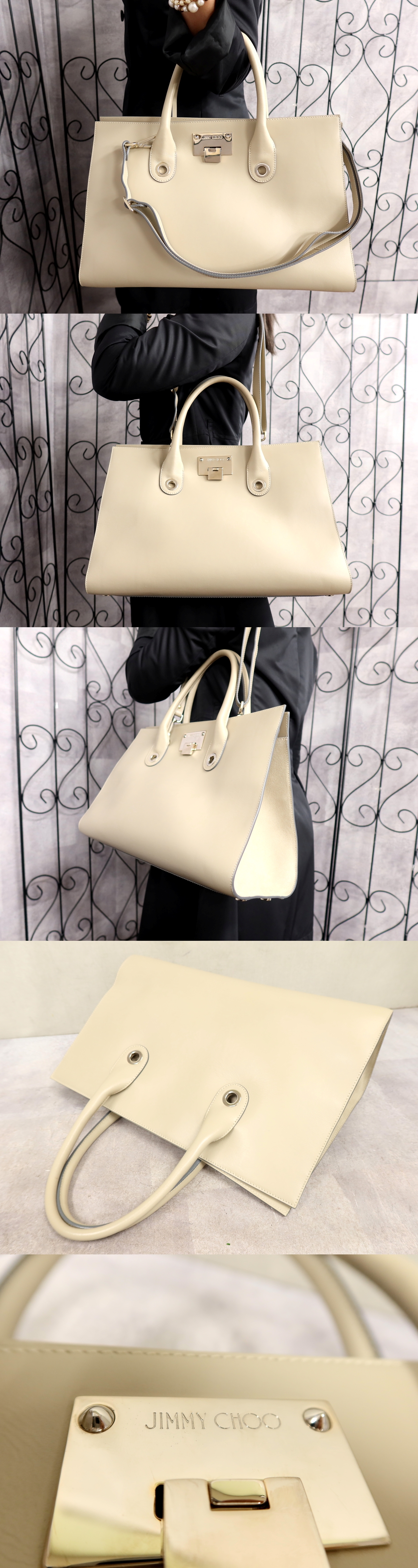 ●超美品●新品同様●JIMMY CHOO ジミーチュウ●ライリー●カーフ レザー 本革●2way トート バッグ●ベージュ●ゴールド金具●B5●Js63470 收藏