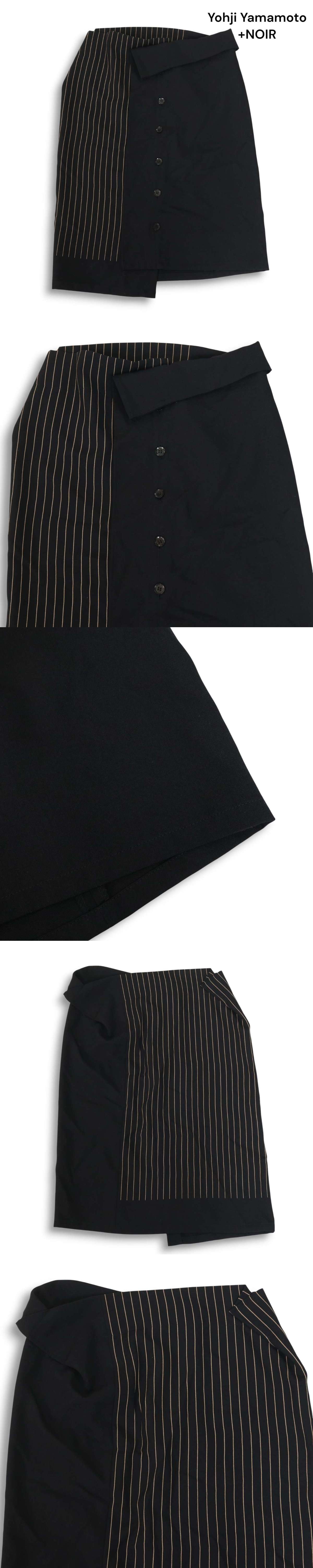 Yohji Yamamoto +NOIR ヨウジヤマモト プリュス ノアール ウール ストライプ♪ アシンメトリー スカート Sz.1 レディース 收藏