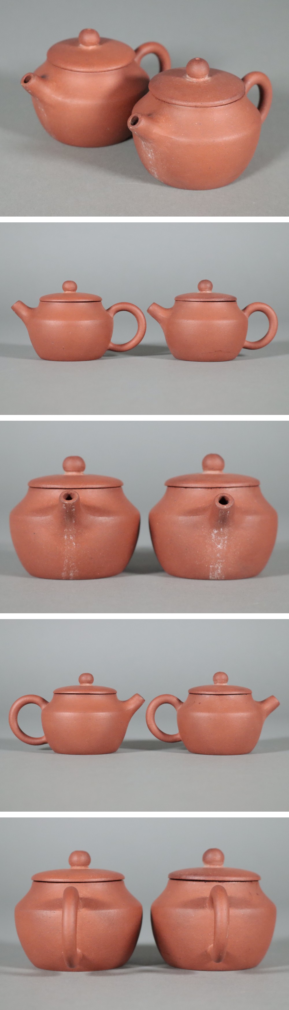 中国美術 宜興 墨縁斎製 底款 / 朱泥 紫砂 砲口 急須 紫砂壷 茶壺 一対 / 煎茶道具 茶道具 茶器 顧景舟 中国 中國 古玩 唐物 時代物 骨董品 收藏