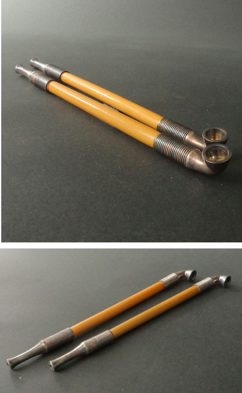 委託HK◇時代 短キセル(一双)(茶道具 喫煙具 莨盆 煙草盆 竹工芸 金属工芸 茶事 茶席 茶の湯 莨入 煙管 刻みたばこ パイプ 古物 骨董) 收藏