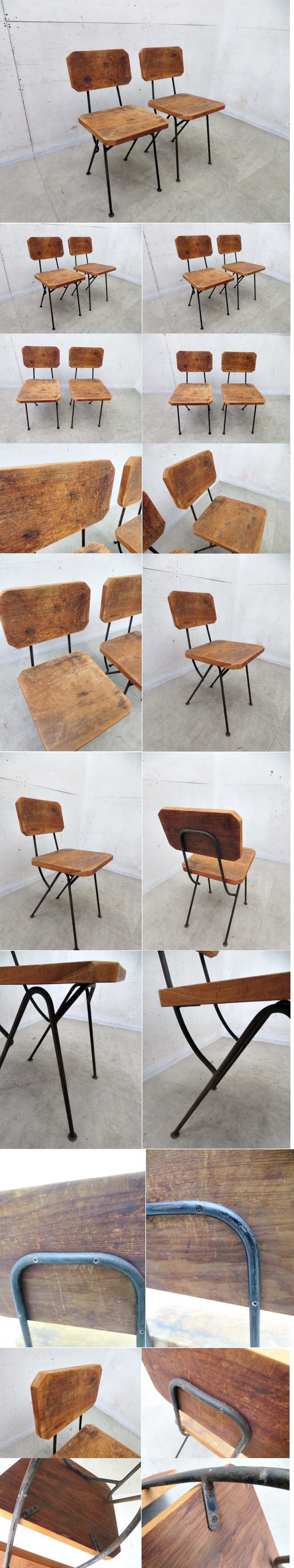 ■P889■ヴィンテージ■インダストリアルスタイル■カフェ■アイアンフレーム×ウッド■ダイニングチェア■2脚セット■ 收藏