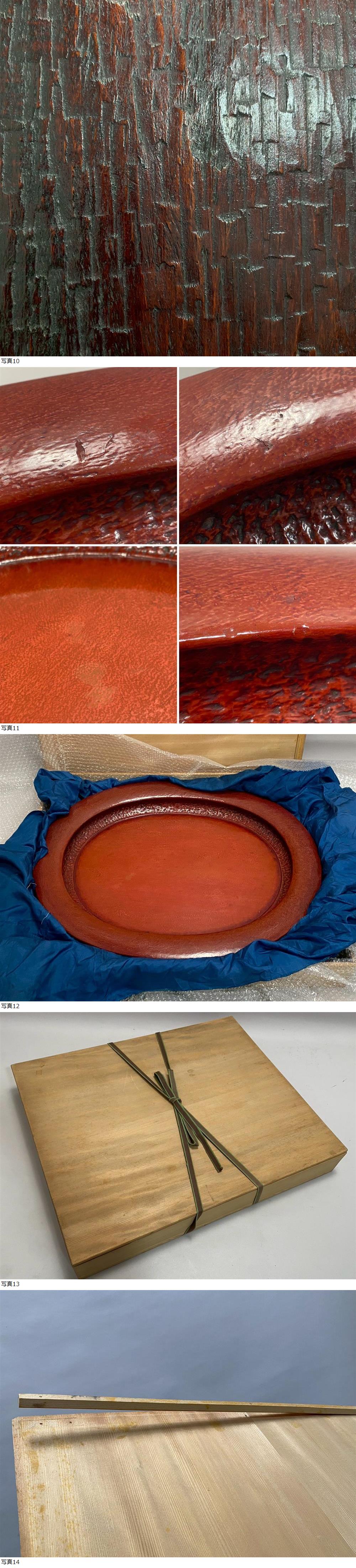 初代 後藤太平造 七十翁「彫抜楕円盆」 特大67.5cm 讃岐漆芸 後藤塗 名工 検) たたき後藤 梧桐塗 讃岐塗 伝統 香川漆器 茶道具 煎茶道具 收藏
