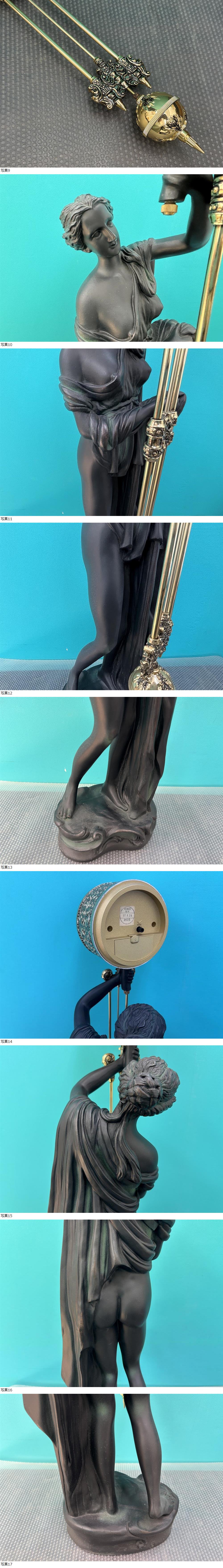 出品の商品は 21356-4★CITIZEN シチズン 置時計 振り子時計 オブジェ インテリア 女神像 ヴィーナス になります。 出品詳細を最後まで読んで頂き、入札をご検討下さい。 ・画像で詳細・状態をご確認ください。 ・頂き物です。 ・未使用です。 ・長期間自宅保管品です。 ・不動品です。 ・電池を入れるところが劣化しています。 ・女神像にも傷みがあります。 ・時計内部にサビ等の傷みもあります。 ・時計のみサイズ:直径約12.5㎝/タテ約17㎝/厚さ約8.5㎝ ・振り子のみサイズ:全長約45.5㎝/ヨコ約6.5㎝ ・女神像サイズ:高さ約57.5㎝/ヨコ約16.5㎝/奥行約13㎝ ・サイズ寸法は全て素人寸法ですので目安程度にお考え下さい。 ・総重量約6.8㎏ ・修理等して正常に動くか保証は出来ません。 ・現状品、ジャンク品としてのお渡しになります。 ・ご確認したい点があれば、質問よりご連絡ください。 専門知識が必要なご質問にはお答え出来ない事もありますが、可能な限りご返答させて頂きます。 ・画像が全てとなりますので掲載画像をご覧の上ご判断頂きご入札をお願い致します。 | ||||
