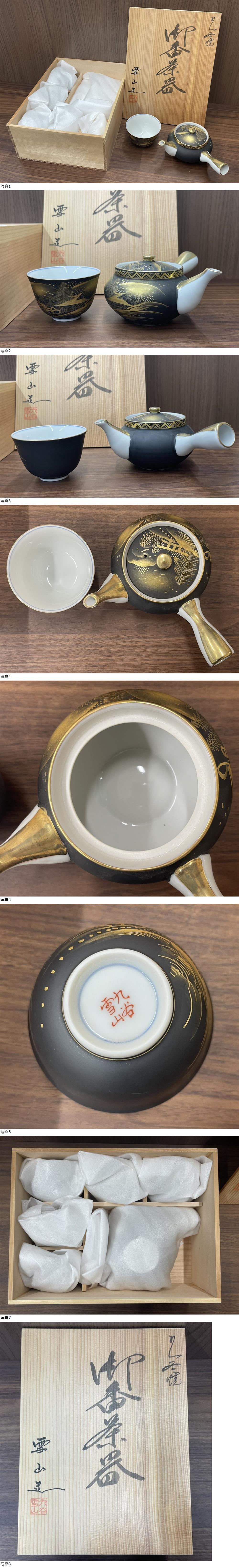 (T054) 九谷 九谷焼 和食器 茶道具 煎茶道具 急須 茶器揃 湯冷まし 茶器 金彩 湯呑み 雪山作 茶器セット 5客セット コップ グラス 收藏