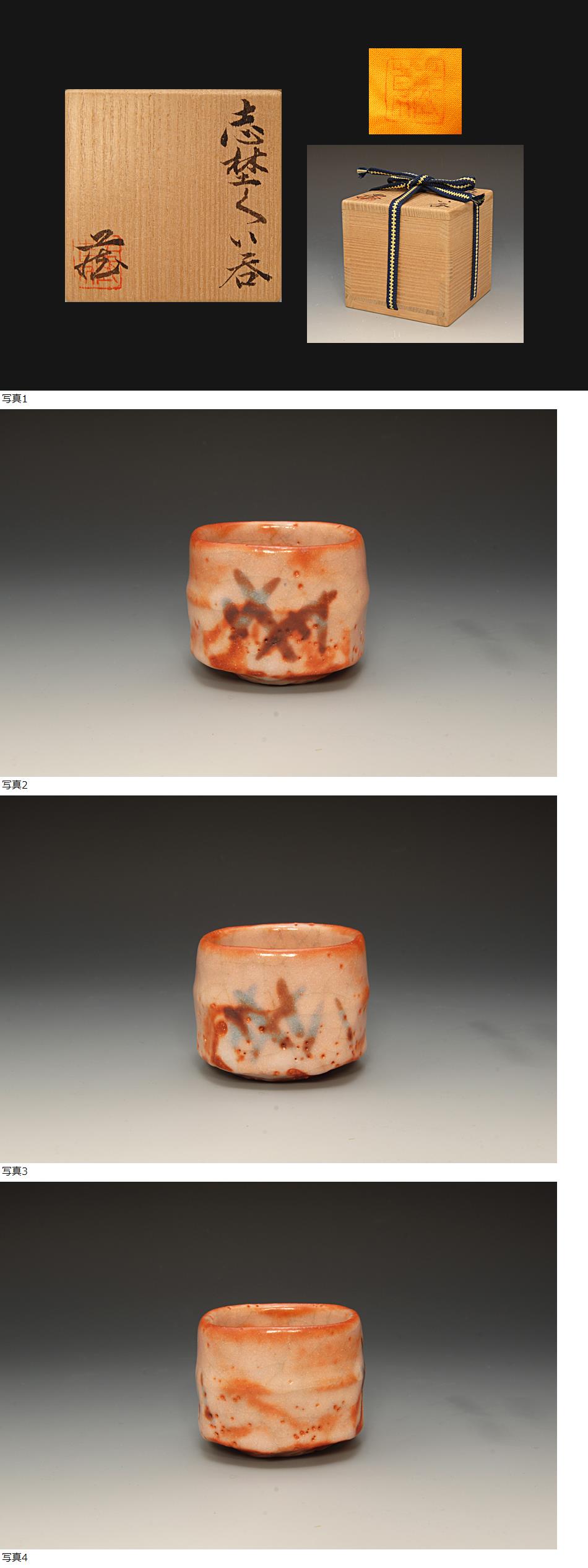 星庵厳選名品企画 人間国宝 鈴木蔵 作 赤志野 草文 酒盃 共箱 酒器 收藏