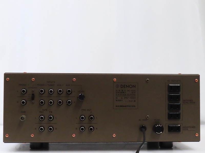 ■メーカー : DENON ■型番 : PRA-1001 ■外径寸法 : W410×H152×D271mm ■重量 : 8kg 【商品の状態 当店での確認内容】 基本動作確認済み 「商品の状態」に関しましては当方主観の目安となります。外観などは中古品で個人差もありますので詳細は画像にてご判断ください。 画像にて不明な点はご質問下さい。 出品商品は画像のものですべてになります。画像に写っているもの以外は付属いたしません。 【送料 全国一律 2,080 円 沖縄、離島は別途お見積り】 ※送料がお得になるサービスです(下取りシステムのご案内です) ストア決済利用時にクレジットカードやPayPay残高/PayPayクレジットを利用の方は留意点がございますのでこちらを参照上ご利用ください。 当ストアでは商品を安全にお届け出来るよう提携運送会社と協議の上、発泡緩衝材や強度段ボールの使用等 運送会社が指定する梱包方法や資材を採用しております。 より安全にお届け出来るよう商品仕様により梱包サイズが大きくなる場合や個口数が増える事がございます。 【当ストアオークションルールを入札前に必ずご確認ください。】 【落札後の取引手順】 ・落札後は取引ナビにて、必要事項をご入力後、送信ください。 取引終了後48時間(土、日は除く)以内に入力をお願い致します。 ※ご連絡が頂けない場合は落札者様都合でのキャンセルとさせていただきます。 ・落札代金(商品代金+消費税+送料)の入金をお願い致します。 ※大型商品の場合は送料確定後の決済となる為取引ナビを入力頂き、当ストアより送料のご案内が来るまでお待ちください。(土曜、日曜、祝日の場合は翌営業日より順次ご案内いたします) ・お支払い方法はクレジットカード/PayPay残高/PayPayクレジット/PayPay銀行/ゆうちょ銀行のみです。 ※商品代金引換(代引き)のお取り扱いはしておりません。 ※領収証の発行が必要な方はご連絡ください。 ※銀行振込の際の振込手数料はご負担願います。 ・入金確認後に出荷手配を致します。 (原則入金確認後3営業日以内に発送いたしますが、大型や重量のある製品はお時間をいただく場合もございます。) ・発送は当店指定の運送会社の元払いのみでの発送となります。 ※他の運送会社、送料代引き等は致しかねます。 ※落札者様ご自身での運送会社の手配いただく事も可能ですが荷物事故の責任の所在の問題上、梱包は致しかねます。 ※店頭にお越し頂き手渡しも可能(福岡市早良区)です。ご希望の方はご落札後にご連絡下さい。 ・大型/重量物商品の送料につきましては商品の特性上、荷降ろし状況等により送料が大きく前後し運送業者に別途見積りが必要な為、早めのお問い合わせにてお見積り上、入札をお願い致します。 【初期不良の保証について】 ・商品到着後の初期動作不良、また配送中の事故による破損、不具合が有る場合は、商品発送後10日以内に当ストアまでご連絡ください。当ストアでは修理での対応を優先させて頂きますが、修理不可の場合は全額返金させて頂きます。 (商品代金+消費税+送料のお支払い頂いた金額となります) 【初期不良の保証の対象外について】 次の場合は保証の対象外となりますのご留意ください ・ジャンク商品、現状商品、難あり商品での出品商品。 ※難あり商品に関しましては動作確認時に一部動作不良が確認された商品になり、記載している動作確認以外にも、動作不良がある可能性もございます。こちらに関しましても保証対象外となりますことをご理解ください。 ・年代物のオーディオなどで、当店にてわからない範囲で部品が交換されている場合 ・楽器類の特殊機材(マイクロスコープ等)での確認までは行っておりません。気になる方は事前にご質問いただくか、入札をお控えください。 ※初期不良に関しましては【商品の状態】に記載のもの、またそれによって起因する動作不良は対象外です。 ※商品発送後10日を過ぎてのご連絡は対応が出来ませんので、商品が到着しましたらお早めに確認をお願い致します。 【メーカー保証の加入・継承】 ・未使用品、展示品やメーカー保証期間が残っている商品に関しまして、メーカー保証の加入、継承が必要な方は、落札後取引ナビ内にて当ストアにお知らせください。商品発送までにご連絡いただけない場合、メーカー保証の手続きを承れない場合があります。 【評価について】 ・評価不要の場合、必ず取引ナビの「要望欄」にてお知らせください。それ以外でご連絡をいただいた場合、対応できない可能性がございます。一度行った評価はシステム上取り消しが行えませんのでご了承ください。 【入札削除・キャンセルについて】 ・入札後はトラブル防止の為いかなる事情がおきましても入札を削除等は致しておりません。 ご検討の上入札をお願い致します。間違った際の入札額の金額訂正はご自身で行ってください。 入札額の変更方法 【入札に関しての注意事項】 ・最近イタズラ入札が多く見られるため、新規IDや悪い評価が一定数あるIDからの入