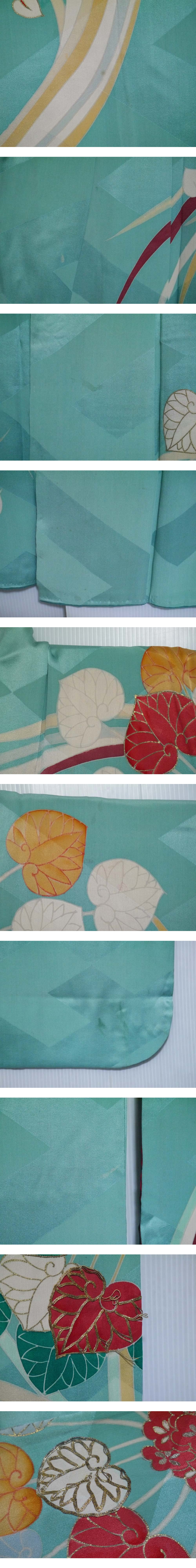 【KIRUKIRU】美品 アンティーク 小振袖 着物 正絹 綸子 大正ロマン ミント 菖蒲 葵 架空の花 レトロ 古布 古裂 リメイク 材料 生地 手芸 收藏