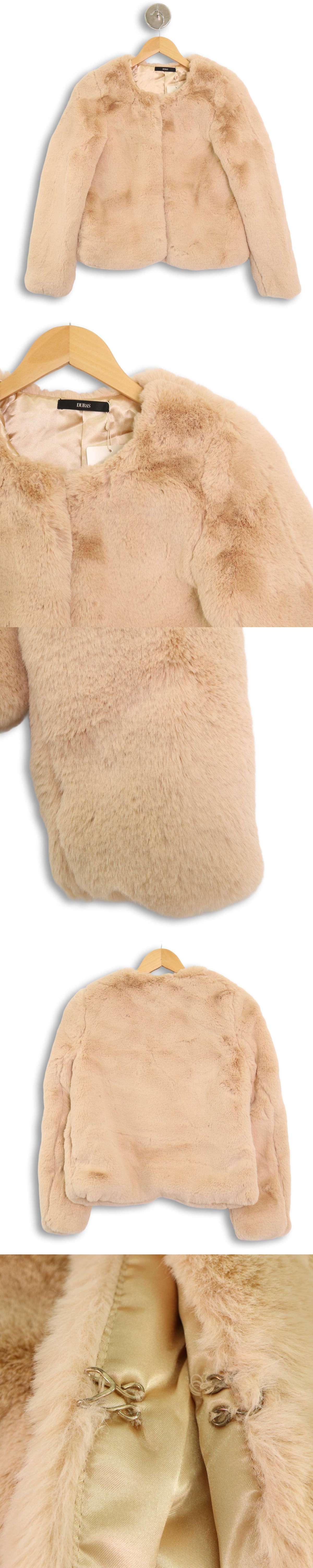 【新品 未使用】 DURAS デュラス 秋冬 フェイクファー★ ノーカラー シングル ジャケット Sz.F レディース ベージュ 收藏
