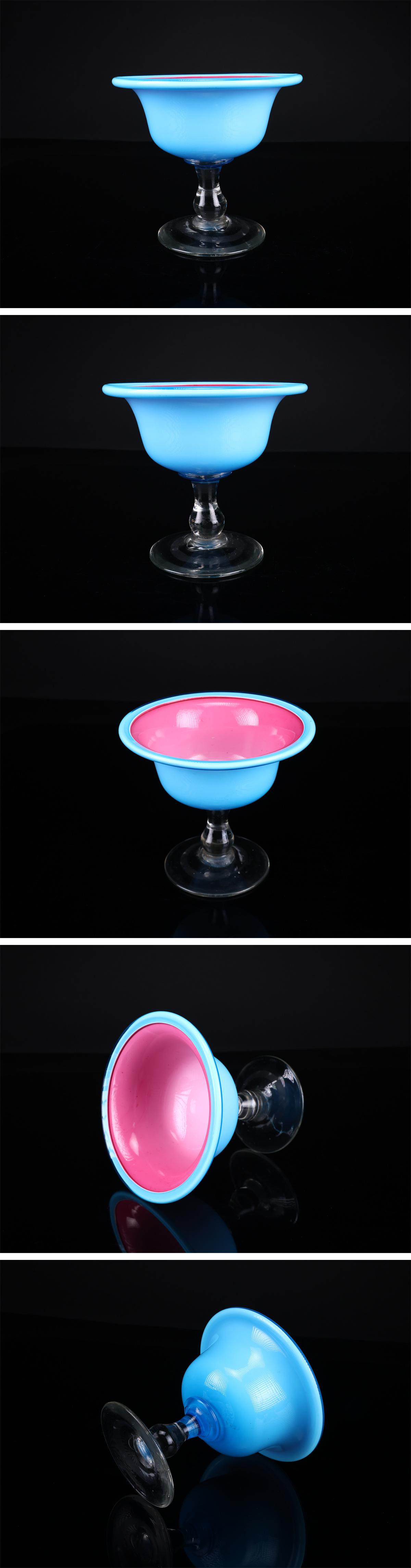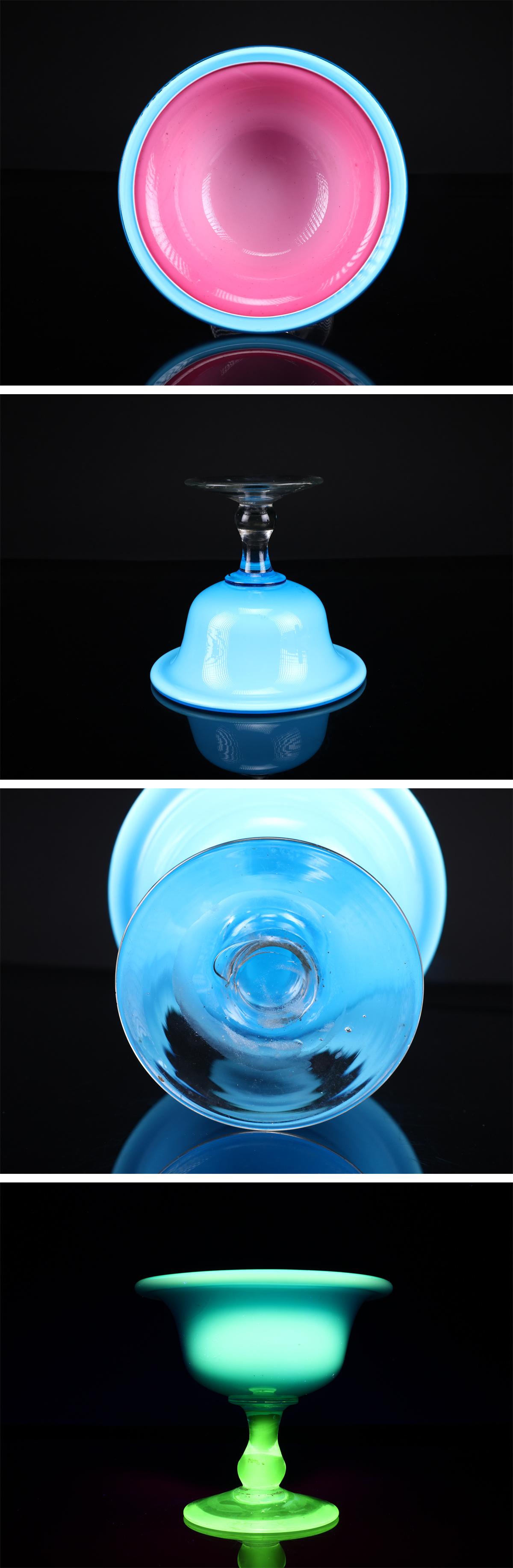 【吉】PD518 明治大正期 【ウランガラス】 外青内赤 氷コップ 大型 高13㎝ 径14.5㎝/美品! 收藏