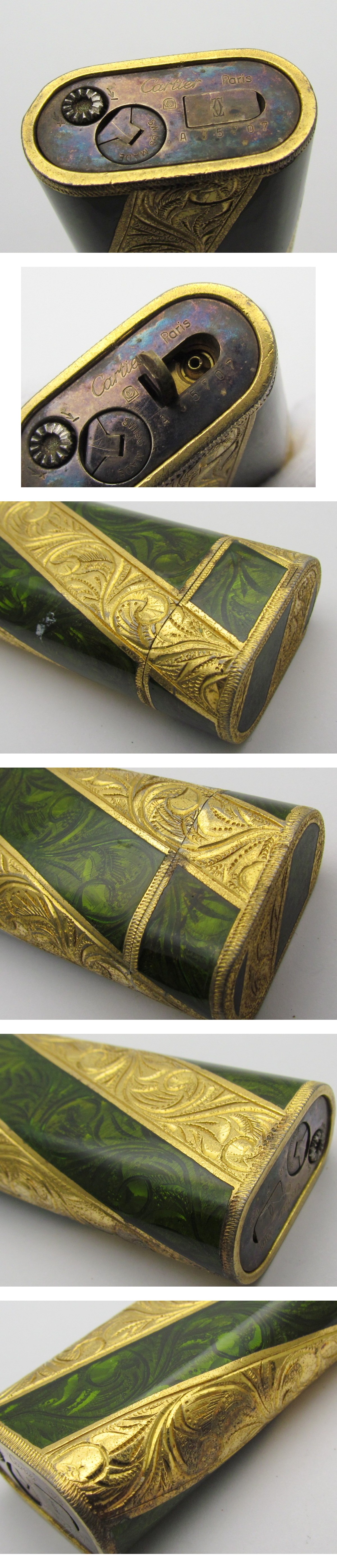 Cartier グリーン系×ゴールド オーバル 楕円形 着火未確認 ガスライター 喫煙グッズ カルティエ 1円~ N0854c 收藏