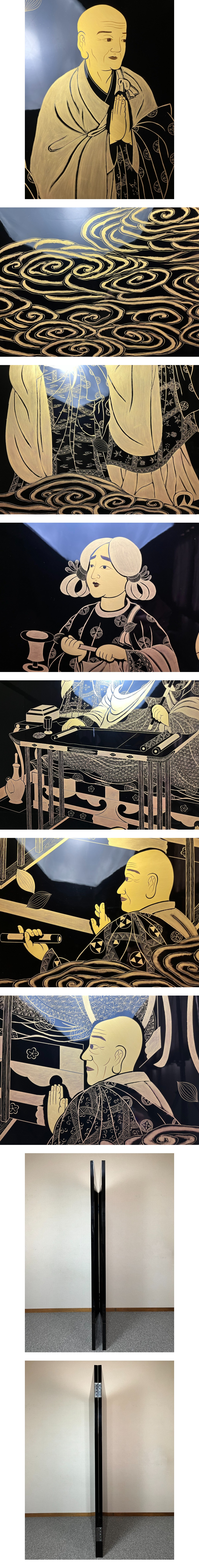 A885【真作】若島宗斎 輪島塗 聖徳太子図 二曲屏風◇漆芸 金蒔絵 仏教 日本美術 工芸品 古美術 骨董 收藏