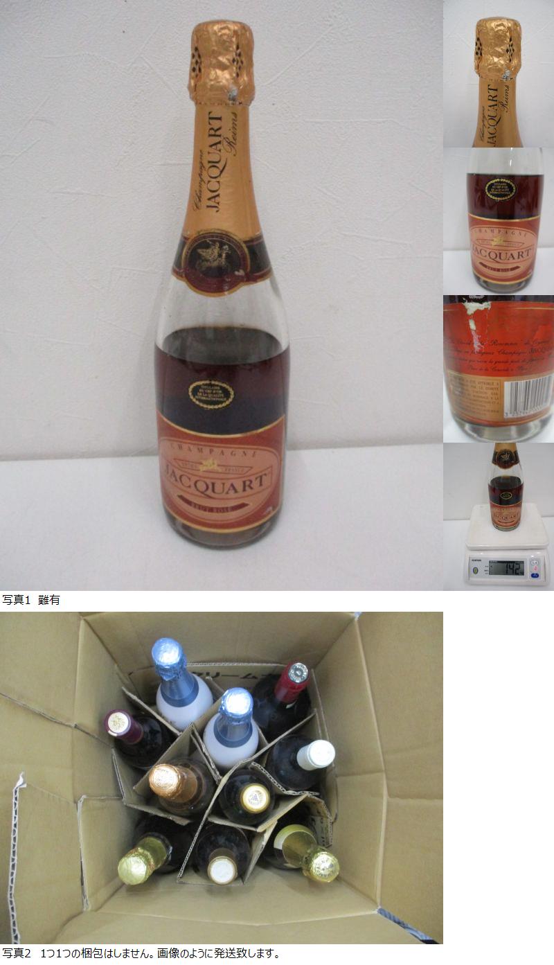 | 商品説明 | 【商品説明】 【古酒】 アルコール度: 容量:ml 状態:未開栓 付属:なし ------------------------------------------------- 完璧な商品をお求めの神経質な方はご入札をお控えください。 個人出品になりますので、専門的なご質問には、 お答えできない場合があります。 ご理解ください。 【注意事項】 ※未開封保管品のため、味や品質、風味、コルクの状態の保証はできません。 ※中身の確認が出来ないため、(浮遊物・沈殿物など)酒質の保証はできません。 ※ラベルや箱等に汚れ・劣化が御座います。 ※本品はコレクション放出品です。 ※画像で判断お願い致します。 ※お酒のため未成年の方のご入札はご遠慮下さい。(20才以上の方限定) ※落札後、生年月日及び満年齢の記載の申告をお願いいたします。 (確認ができない、不備がある場合は御落札者様の都合にて取消をさせて頂きます。) (予めご了承ください。) ※ゆうパックでの発送になります。 定形外での発送はお受けできません。 ◆◆◆◆ 販売業者・氏名・連絡事項 ◆◆◆◆ 販売業者:株式会社中村 所在地:三重県伊勢市 免許番号:伊勢酒19 伊勢務署長 酒類販売業免許通知書 ご入札前に必ず下記の注意事項までお読みになり、お客様が十分にご納得 された上でのご入札、ノークレーム・ノーリターンでお願いいたします。 (ご入札された時点で同意頂いたものとします) ※専門的な事は分かり兼ねます。 質問に関しましては解答出来る範囲でお答え致します。 写真にてご判断頂ける方、ご理解頂ける方のみご入札をお願い致します。 ※入札後のキャンセルや取り置きなどは承っておりませんので入札の際はご注意下さい。 ※落札日の違う商品の同梱やお取り置きは行っておりません。 お取引を円滑に進めるため48時間以内のご返信、4日以内のご入金をお願いしております。 ■コンディション■ 譲渡品で、中身までは分かりかねます。 完璧な物をお求めの方や 神経質な方のご入札はご遠慮下さいませ。 商品は画像の物が全てです。商品の状態等は画像にて ご確認ください。 衝撃剤で梱包して発送いたします。 割れもののため定型外での発送はご遠慮ください。 ご入札前に必ず下記の注意事項までお読みになり、 お客様が十分にご納得された上でのご入札、 ノークレーム・ノーリターンでお願いいたします。 (ご入札された時点で同意頂いたものとします) | |