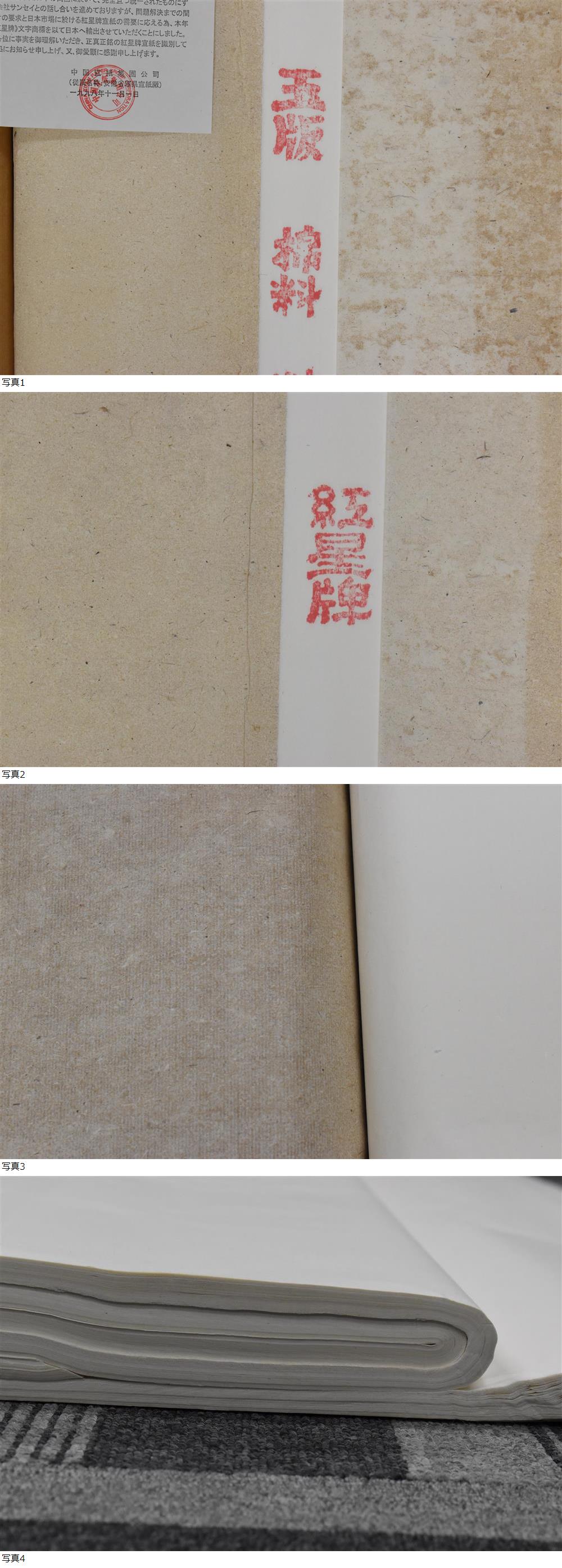 書道 古紙 画仙紙 中国紙 精製六尺綿連 紅星牌 揀選 潔白 玉版 棉料 安徽省涇(けい)県宣紙廠 2002年 97cm × 180cm ⑳ 收藏