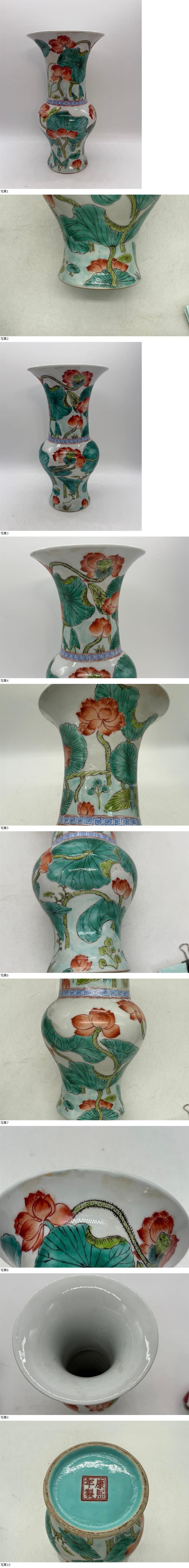 中国 色絵瓶 蓮 康熙年製銘