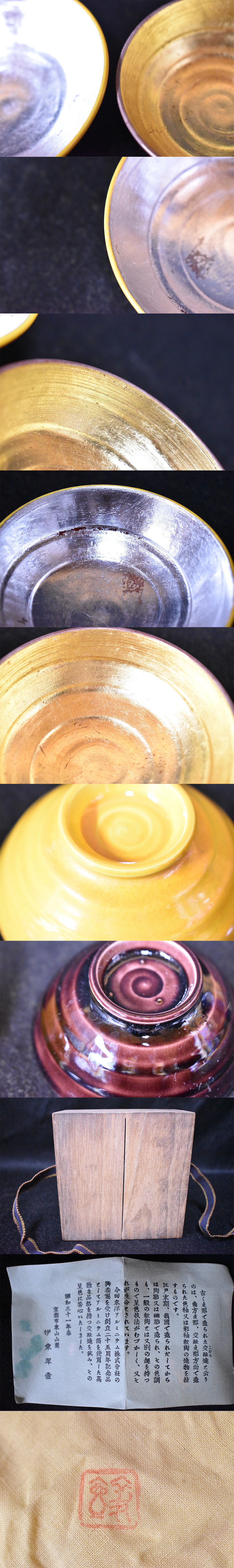 ●交趾焼/嶋台盃/金銀一双/伊東翠壺/京都市東山山麓/昭和三十一年/こおち/東洋アルミニウム株式会社/創立二十五周年記念品/共箱付/U26OT103 收藏