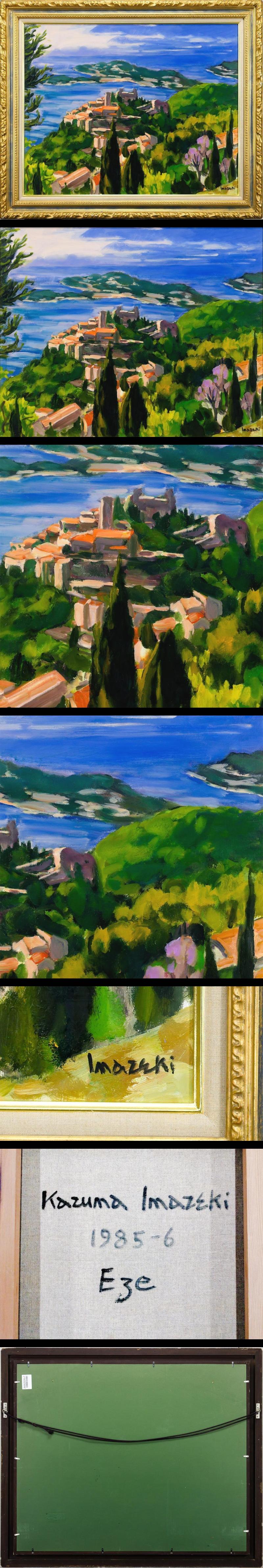 【真作】【WISH】今関一馬「Eze」油彩 30号 大作 1986年作 橙・蒼・緑が響きあう丘 〇国画会員 小山敬三美術賞 物故重鎮 #26012224 收藏