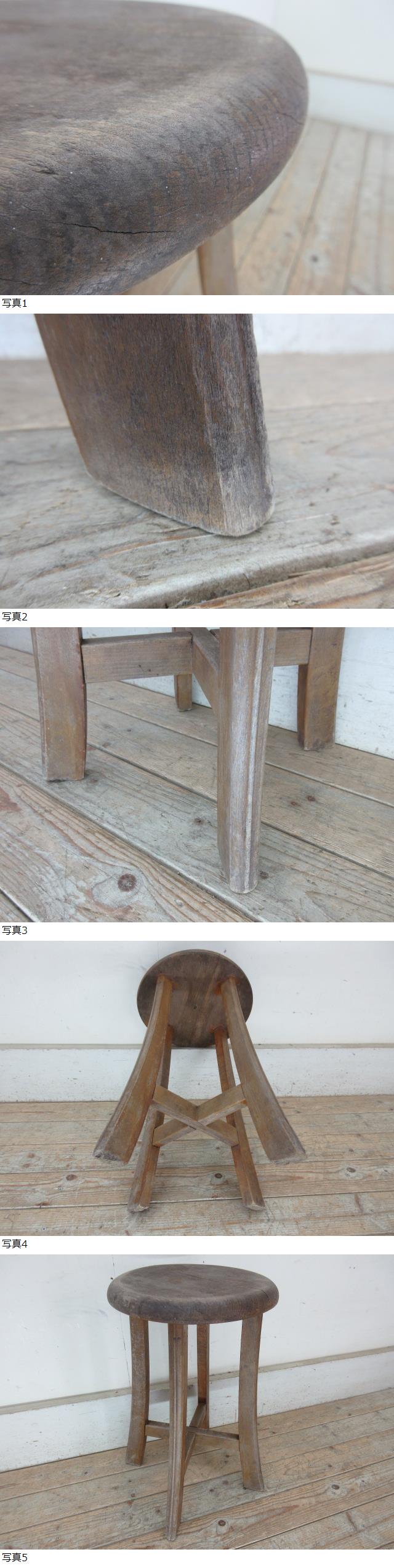 古い楢材の丸スツールD182 アンティーク家具丸椅子花台飾り台ハイスツール店舗什器カフェ什器無垢材古家具 收藏