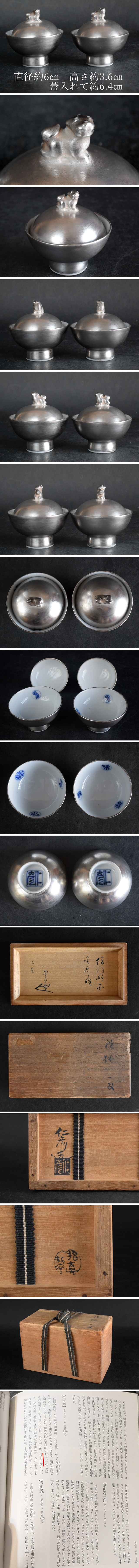 初代 久世久宝(仁彦)作 四代木津宗詮箱 銀彩 祝杯 一双 蓋付盃 收藏