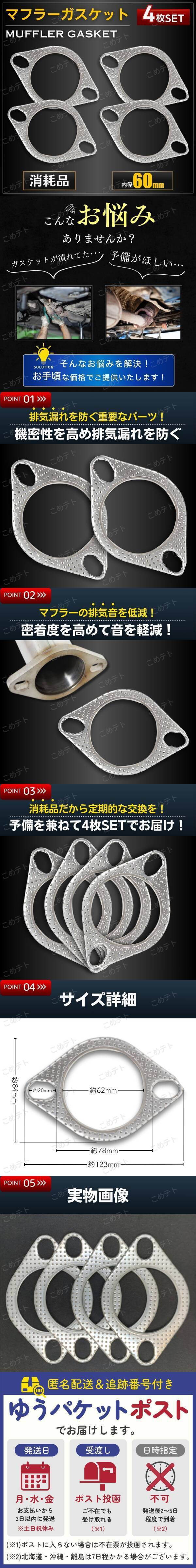 マフラーガスケット 60 mm パイ φ 4枚 フランジ スペーサー サイレンサー タイコ エキゾースト ターボ エンジン パーツ 交換 楕円 汎用 收藏