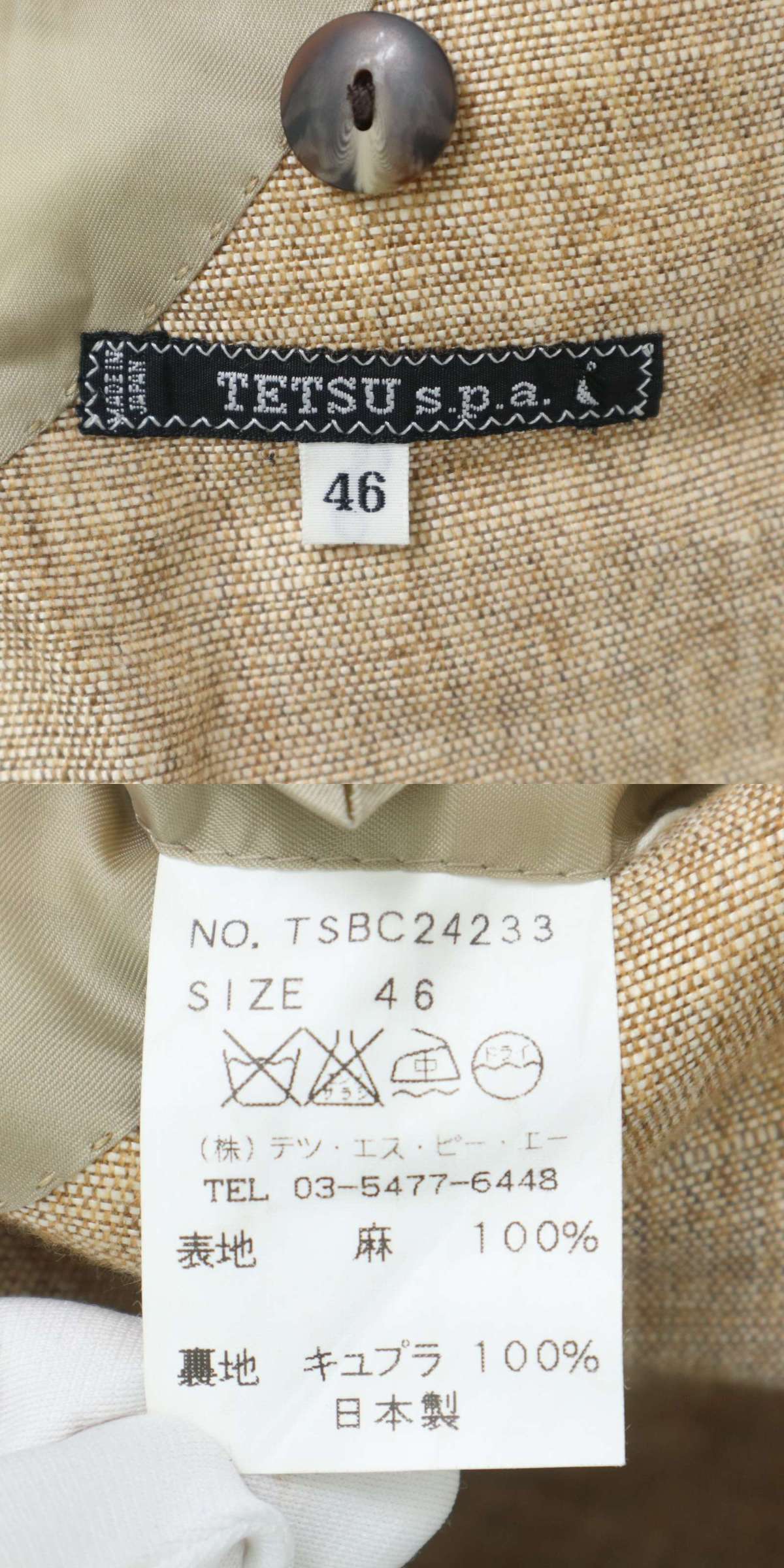 TETSU s.p.a テツ エスピーエー 春夏 背抜き★ 麻 リネン100% テーラード ジャケット ブレザー Sz.46 メンズ 日本製 收藏