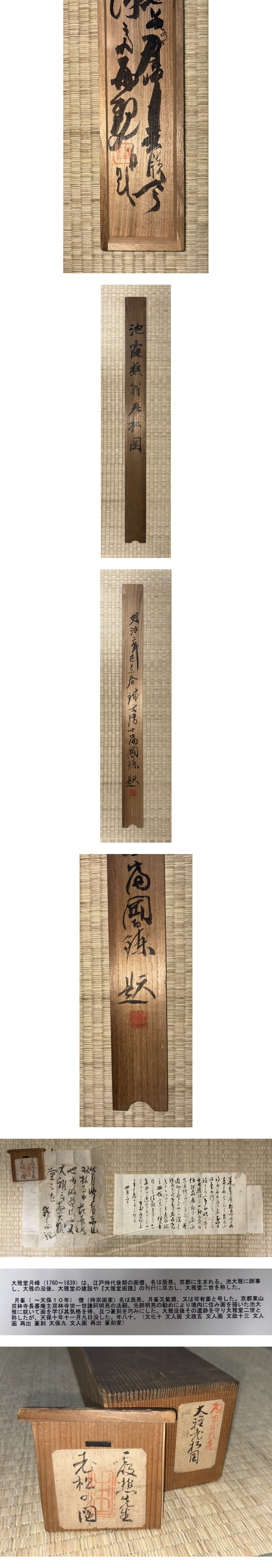 C2933 池大雅【老松図 富岡鉄斎内箱外箱書・書状・巻止書 大雅堂月峰鑑定書状 日本画 文人画】 收藏