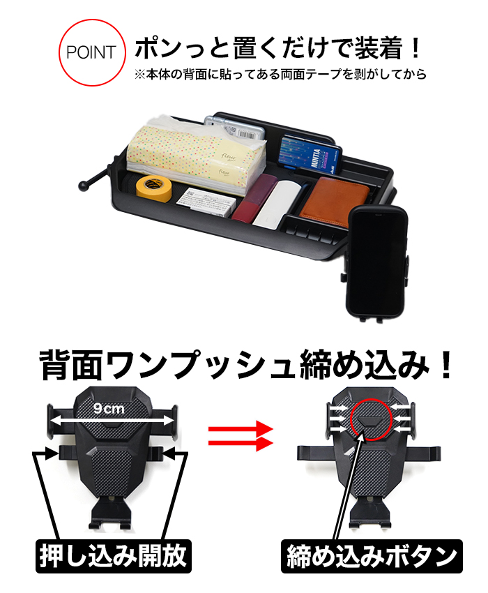 | 大容量トレイで散乱しがちな小物等の整理に最適! スマホホルダーは360度調整できて充電も可能な形状なので ナビ利用時も大変重宝します☆ ■適合車両 ・ハイエース 200系 1型? ・レジアスエース 200系 1型? ■適合詳細 ・年式:H16.8? ※標準ボディ車のみ対応 ※年式やオプション・グレードにより適合しない場合がございます。 形状をよくご確認の上ご注文お願いいたします。 ■材質:ABS樹脂製 ■セット内容 ・ダッシュボードトレイ×1 (両面テープ貼付済み) ・ラバーマット×1 ・滑り止めシール×1 ・スマホホルダー×1 ・スマホホルダー接続部品×2 |