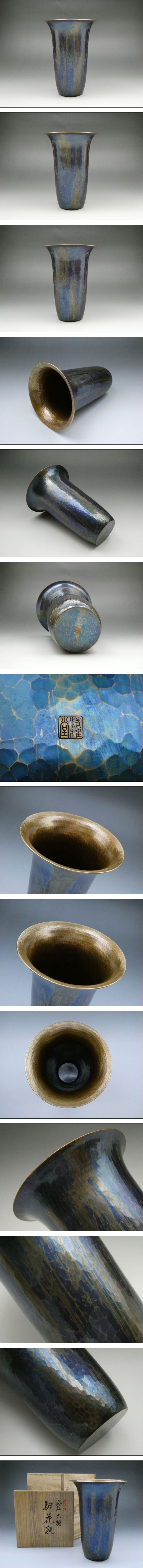 | ★商品★ ・花瓶【風紋大輪花瓶】 ★製造元★ ・清雅堂 (西片正) ★寸法★ ・高さ (約)19.5cm ・口径 (約)14cm ・胴径 (約)9cm ★重量★ ・(約)563g ★材質★ ・銅製 ★付属品★ ・共箱 ・栞 ★状態★ ・目立った傷、汚れ、変色は見られません。 ※備考※ 商品状態に関しては、あくまでも当方の見立てとなります。 程度には個人差がございますので、商品画像を良くご覧になられた上でのご入札お待ちしております。 |