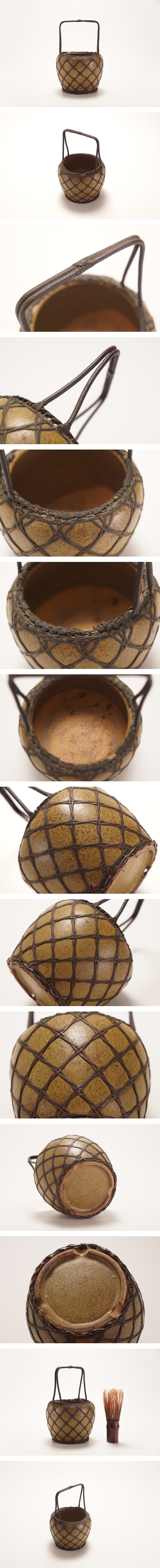 1円~【旧家整理品06】時代品 蕎麦釉 銅網目編 手付鉢 籠掛 花器◆茶室 火入 建水 煎茶道具 骨董品 旧家蔵出し うぶ 売り切り 古美術品 收藏