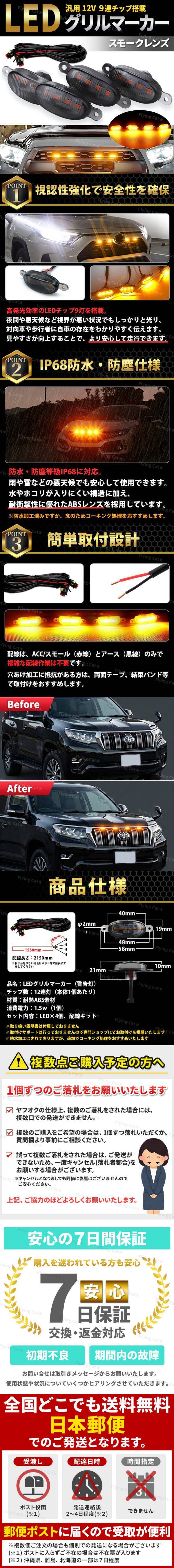 グリルマーカー 車 LED アンバー オレンジ デイライト スモークレンズ カスタム 12V 防水 汎用 ジムニー RAV4 デリカ プラド ハイラックス 收藏