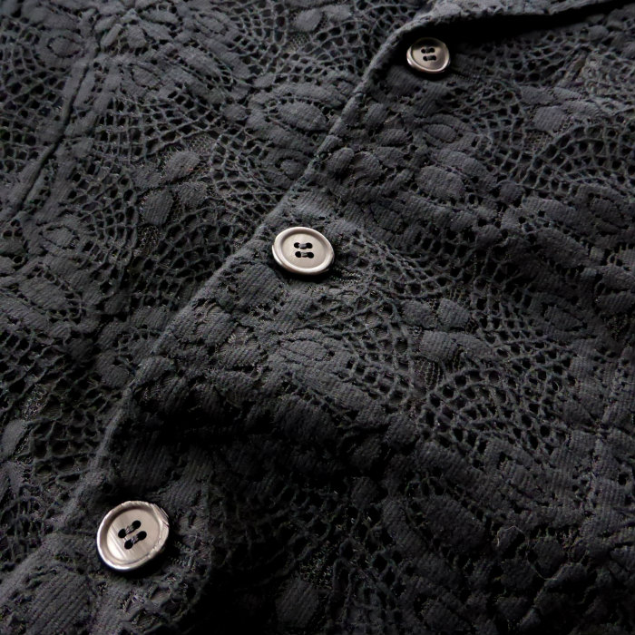 | コム・デ・ギャルソン オム プリュスの2012SSシーズンのレースファブリックコート。 表地にレース生地を使用したミドルコート。 製品染めによる裏地のムラ感がカジュアルダウンをはかります。 ドレスライクなチェスターコートをブランドらしく再解釈し、デザインの中にエレガントさが垣間見える逸品です。 |