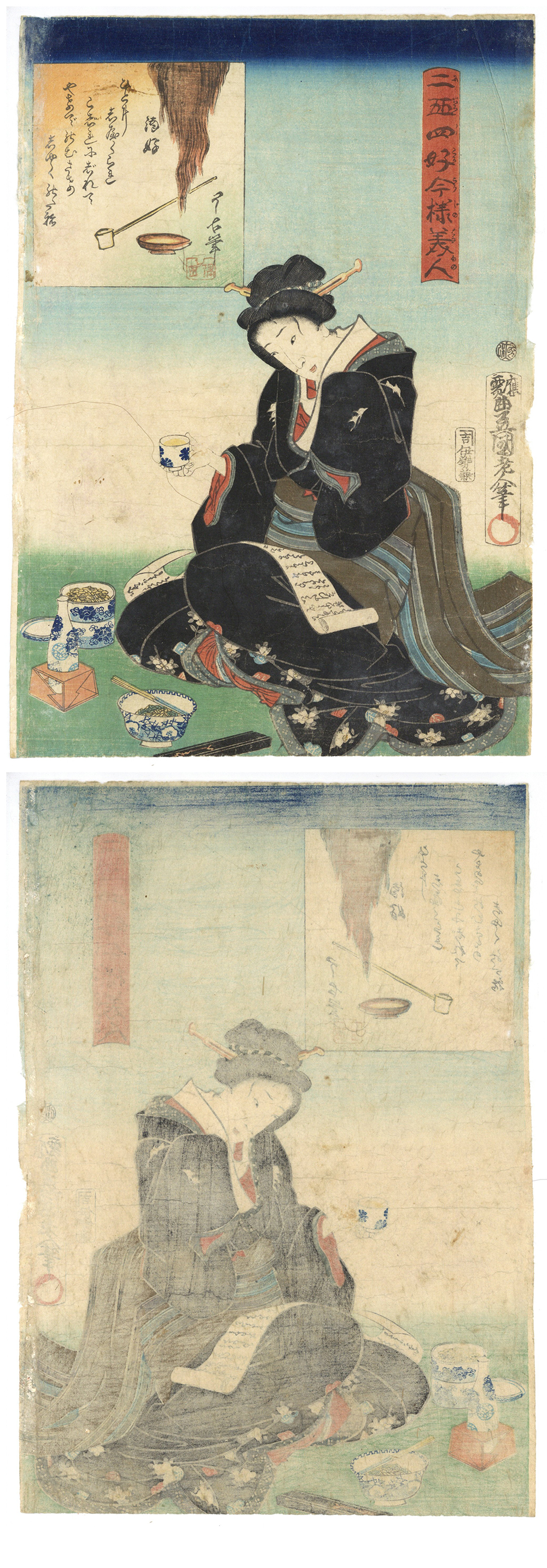 豊国三代「二十四好今様美人 酒好」本物 浮世絵 木版画 大判 錦絵 ukiyoe 美人画 お酒 Alcohol 收藏
