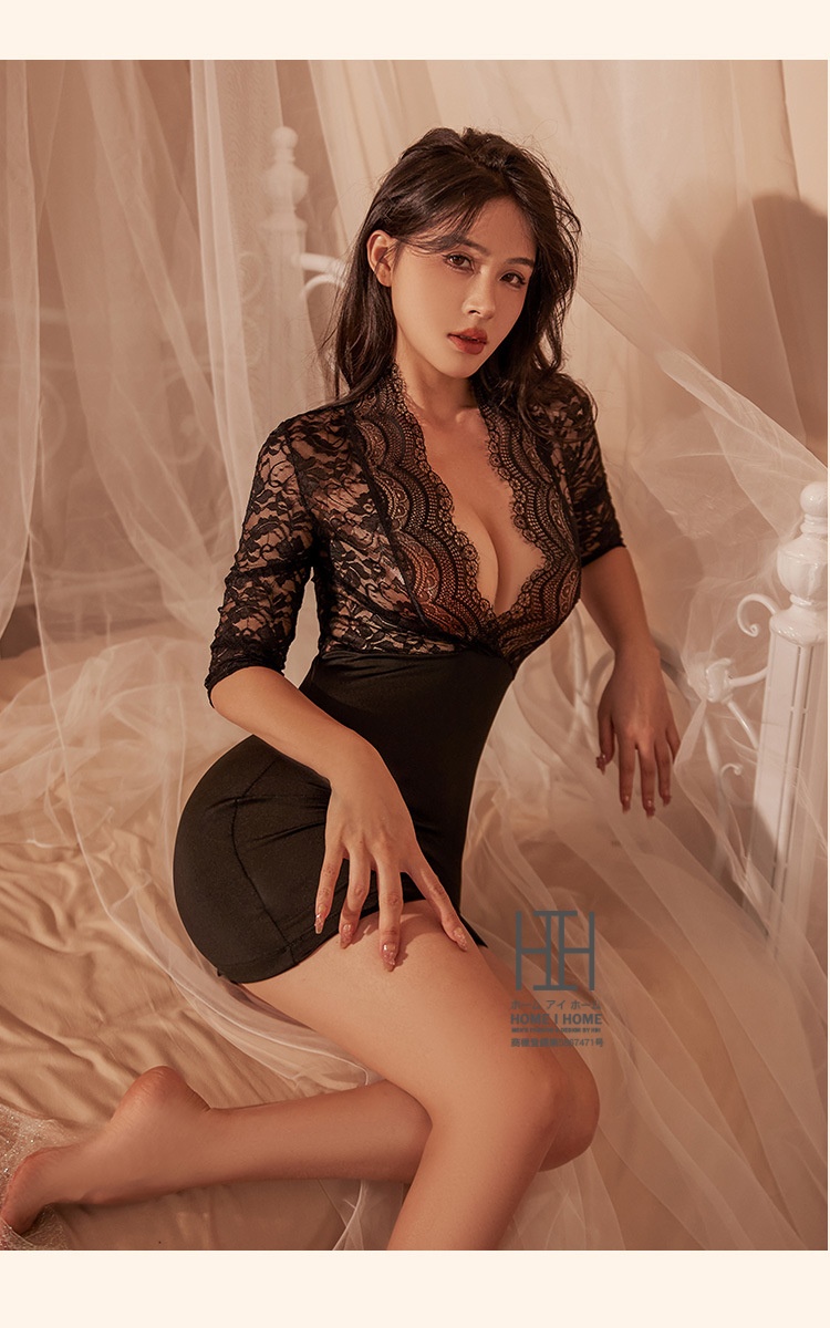 ボディコン タイト ミニ ワンピース ランジェリー ベビードール セクシーワンピース レディース Vネック 五分袖 ミニワンピース タイトワンピ セクシー用 インナー ナイトウェア ミニ丈 黒 白