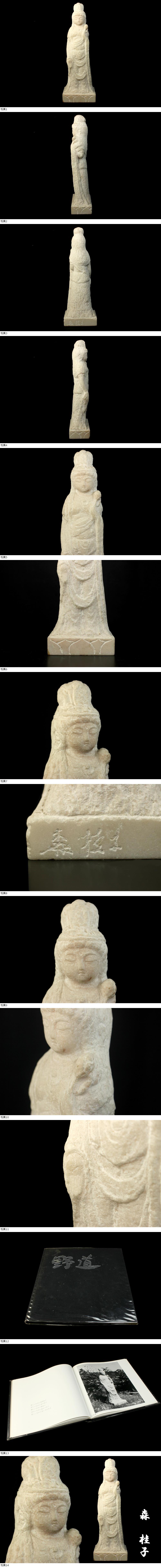 【董芸】仏教美術 彫刻家 森 桂子 造 石仏 観音菩薩像 3.5㎏ 作品集付 [15N133] 收藏