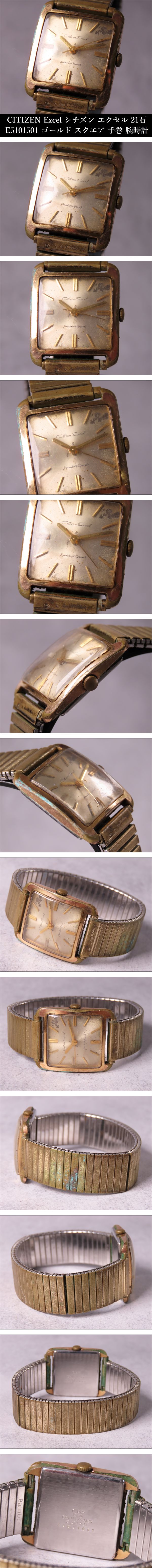 【ONE'S】CITIZEN Excel シチズン エクセル 21石 E5101501 ゴールド スクエア 手巻き メンズ腕時計 動作品 | |||