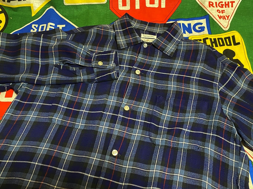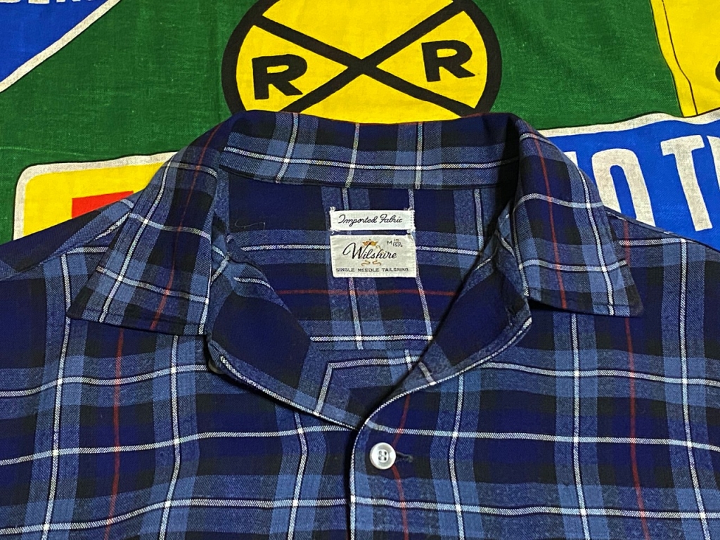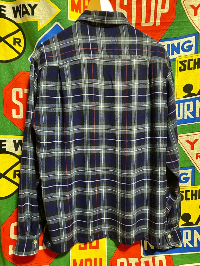 ☆好配色な1枚★Made in USA製アメリカ製ビンテージコットンレーヨンギャバシャツ60年代60s開襟シャドーチェックオンブレーチェックMサイズ 收藏
