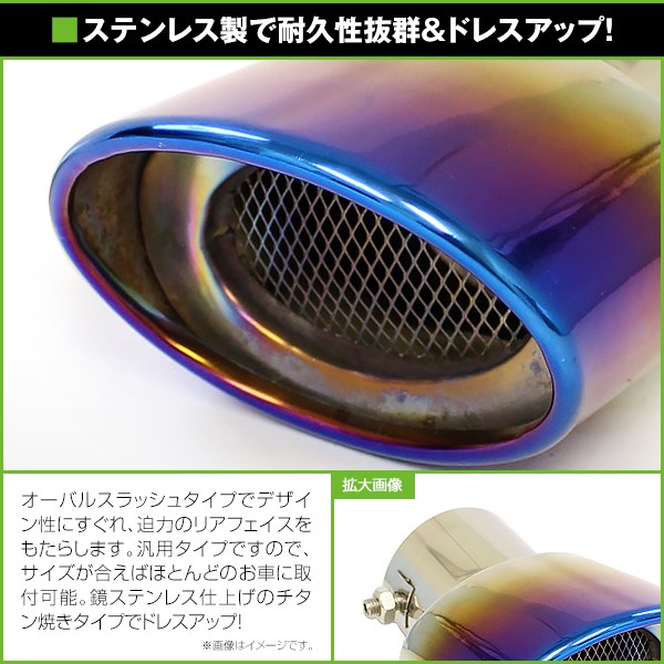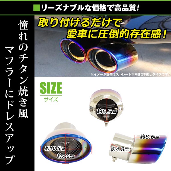 【送料無料】 汎用 マフラーカッター チタン焼き 下向き シングル ボルト付き 2本セット 後付け リアパーツ マフラー 本体 エアロ 收藏