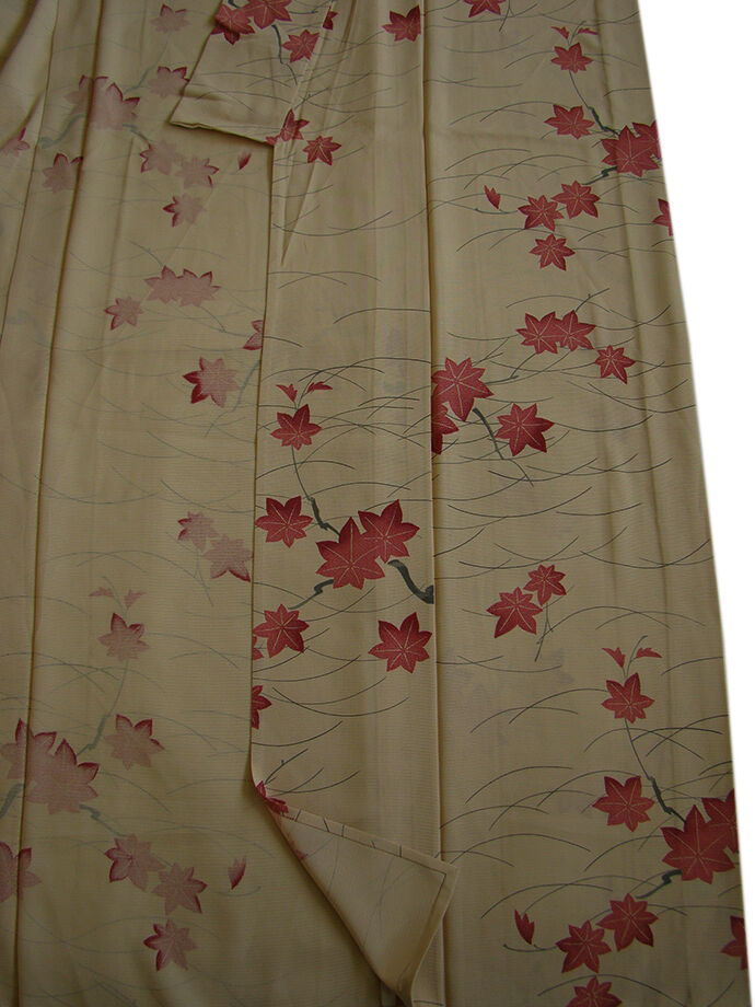 | 商品説明 | こちらのお品は夏物でございますので、7月~8月にお召頂ければと思います。 「絽」と言えば、紗と双璧を成す夏のお着物の生地で その最大の魅力は絶妙の透かし加減でございます。 清涼感溢れる地の風を通すしなやかさは夏に着物を着るという贅沢を 快適に愉しませてくれることでしょう。 着物には、大きく分けて「袷(あわせ)の着物」と「単衣(ひとえ)の着物」と「夏着物」があります。 反物(表地)を着物に仕立てるときに、裏地類をつけるものを袷の着物、 つけないものを単衣の着物と呼び、胴裏や八掛といった裏地がつかない一枚ものの着物です。 また裏地がないため、座る時などにヒップのラインが目立たないよう、 居敷当て(いしきあて)の生地をつけることもあります。 居敷当ては付いておりません。 とてもしなやかなさらっとした肌触りが極上の着心地を誘う滑らかな「駒絽」の生地は 渋い白茶色地にグレー、赤紅色の花木、つゆ草柄の染柄が 洒落感溢れる着物姿を演出しております。 また、背に「丸に鷹羽違い」の刺繍紋1ヶ入っております。 |