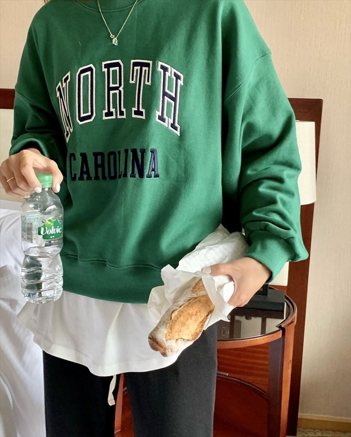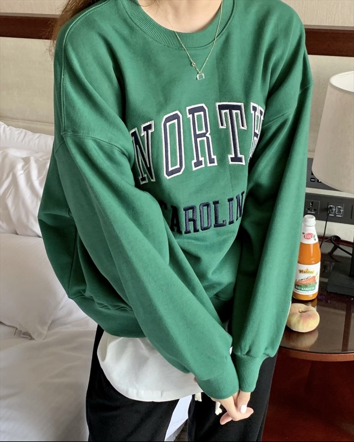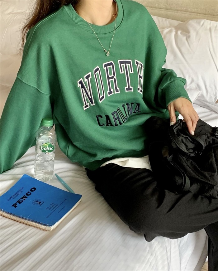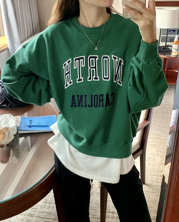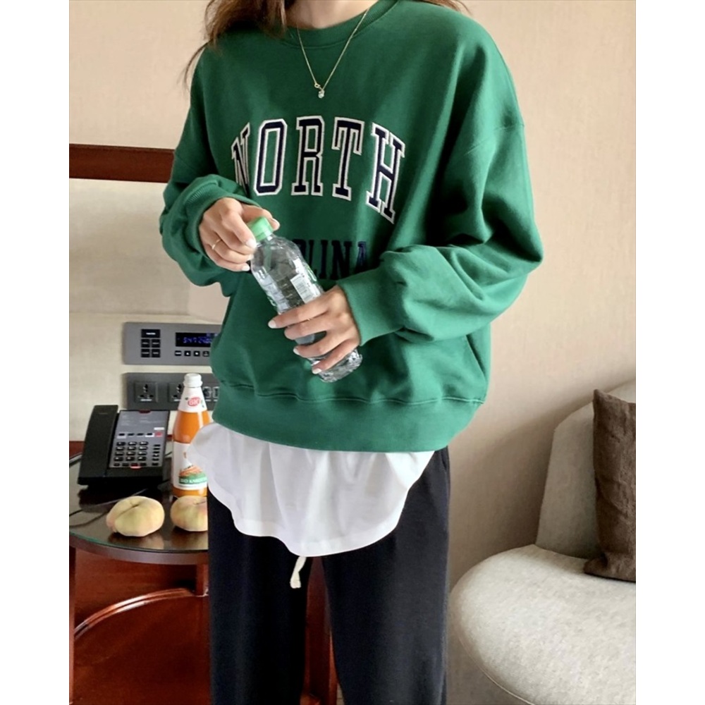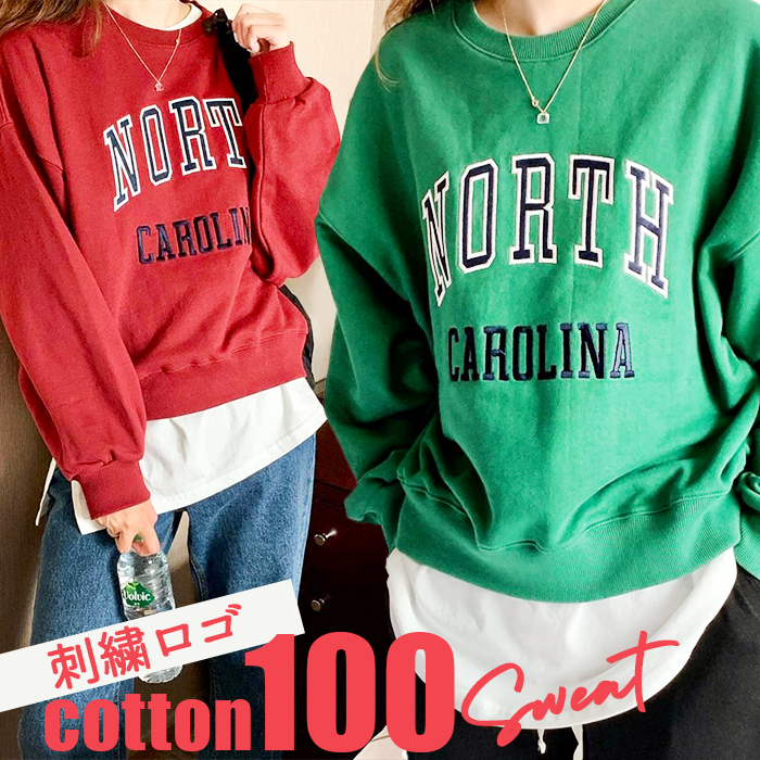 ☆ グリーン ☆ ノースカロリナ刺繍ロゴスウェット レディース ロゴ トレーナー 綿100 スウェット トップス プルオーバー 收藏