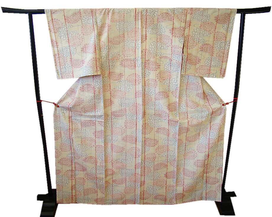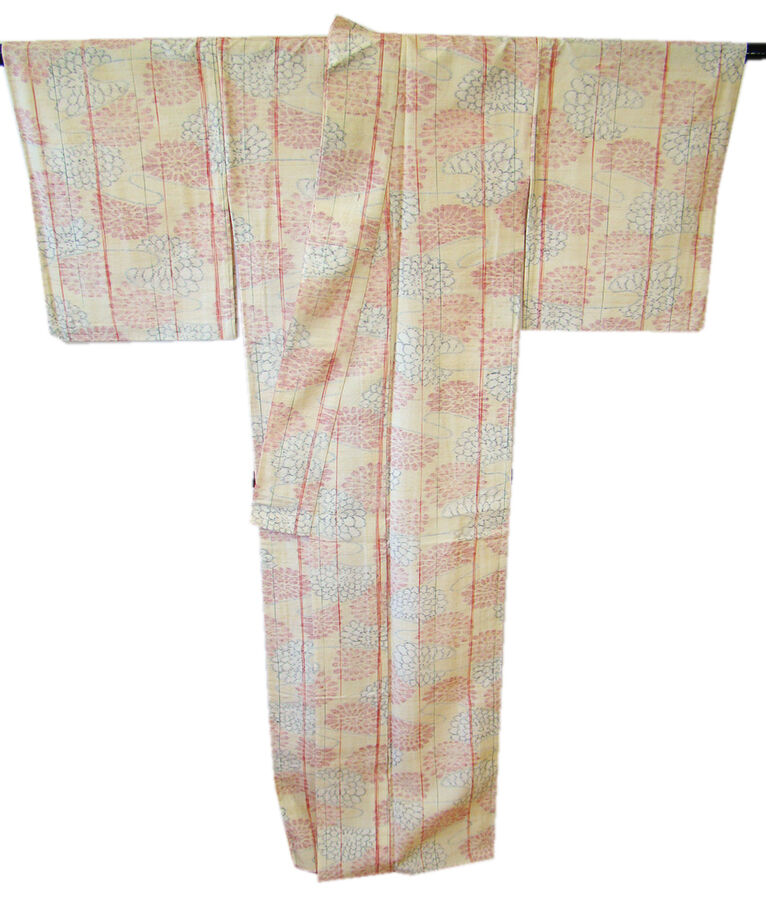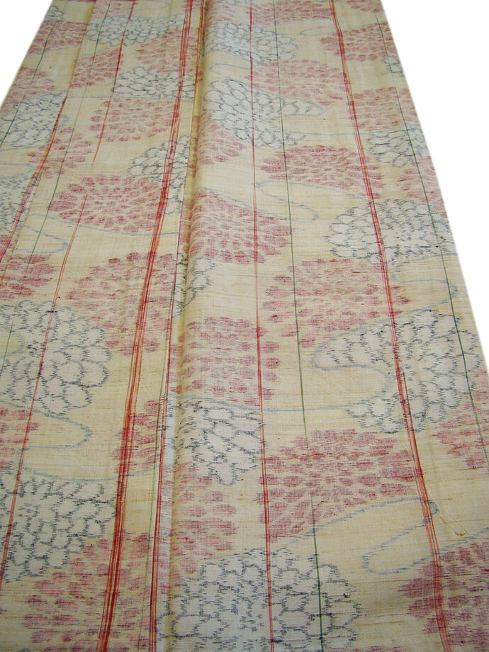 | 商品説明 | こちらのお品は「単衣」ですので5月、6月、9月にお召頂ければと思います。 着物には、大きく分けて「袷(あわせ)の着物」と「単衣(ひとえ)の着物」と「夏着物」があります。 反物(表地)を着物に仕立てるときに、裏地類をつけるものを袷の着物、 つけないものを単衣の着物と呼び、胴裏や八掛といった裏地がつかない一枚ものの着物です。 また裏地がないため、座る時などにヒップのラインが目立たないよう、 居敷当て(いしきあて)の生地をつけることもあります。 居敷当ては付いておりません。 しなやかなさらりとした風合いが着心地良い単衣の真綿紬地の紬地、 クリーム色地に青、黒、赤色の花、流れ柄の織柄となっております。 |