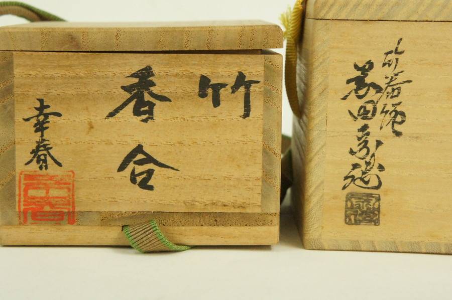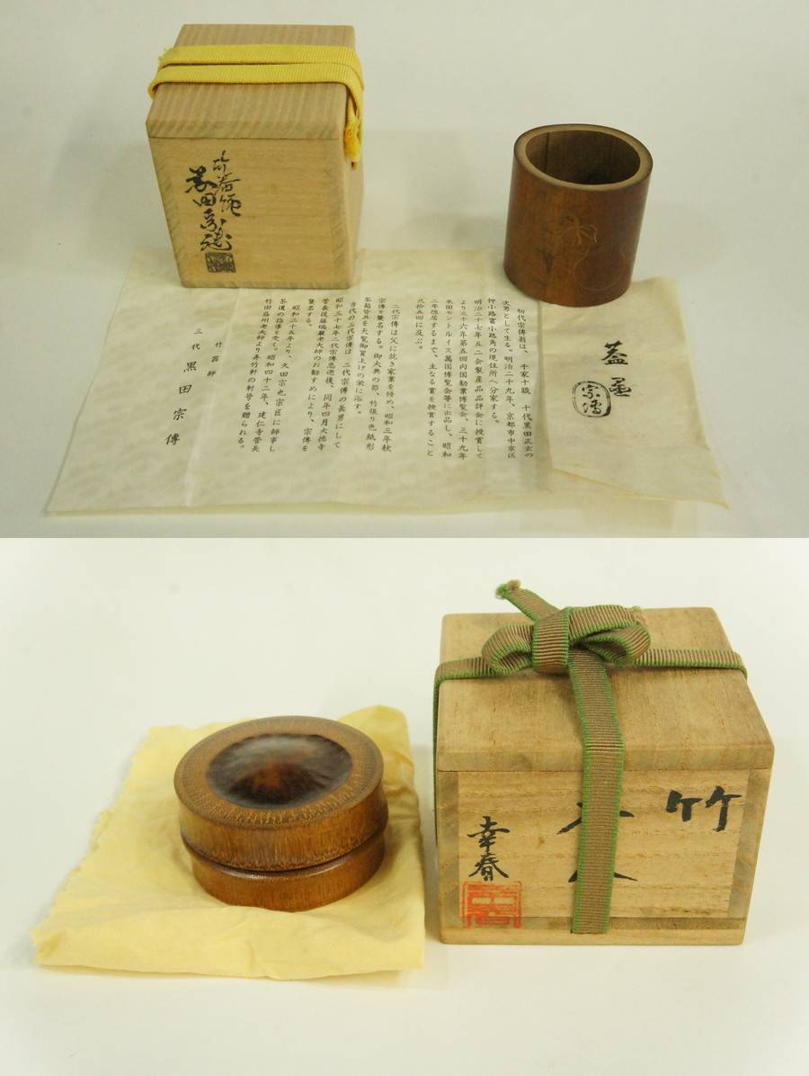 ●竹製茶道具2点セット 黒田宗傅 蓋置 畑幸斎 香合