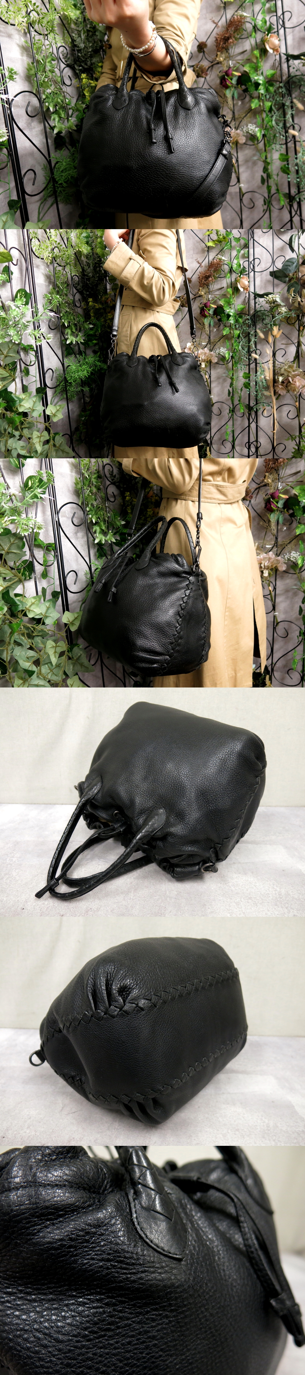 ●超美品●BOTTEGA VENETA ボッテガ ヴェネタ●イントレチャート●カーフ レザー 本革●2way 巾着 ハンド バッグ●黒●腕掛け●Js55604 收藏