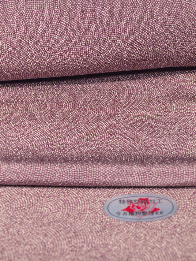 沈んだ京紫色の地に、鮫の文様が染め抜かれている、縮緬の江戸小紋の反物です。 落ち着いた艶やかさのあるお色目です。やや大きめのシボの縮緬地で、やわらかな手ざわりです。 未仕立て未使用保管品です。中まで確認しましたが、しみやよごれ、褪色などのダメージもなく、新品同様です。 |
