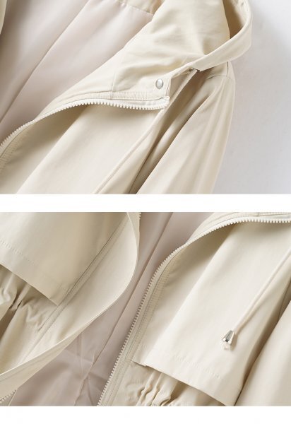 新品暖かいレディースウエストゴムトレンチコートジャケットオフホワイトXXL 收藏